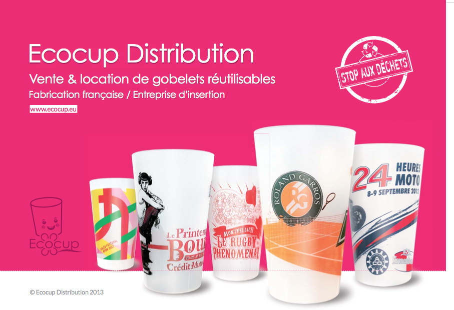 Capture d’écran 2015-07-10 à 23.29.38Nous avons décidé de travailler avec la société Ecocup. Cette société française, leader sur le marché des gobelets réutilisables a l’habitude de gérer de grands événements comme les fêtes de Bayonne, Rolland-Garros ou la prochaine Coupe de Monde de rugby. Les gobelets d’Ecocup sont fabriqués en France, lavés dans des chaînes de lavage étudiées et conçues spécialement pour réduire la quantité d’eau nécessaire, avec des produits de lavage à 95 % bio dégradables.